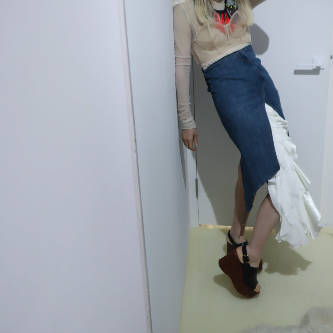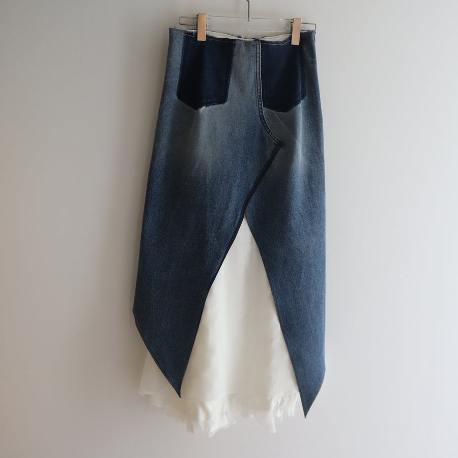 TRANSE PARIS  UPCYCLED DENIM RUFFLE SKIRT
