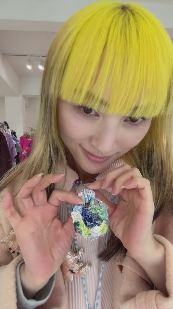パリを拠点とするアクセサリーデザイナー、MATHILDE HIRON。色と質感の組み合わせに重きを置き、デッドストックの貴重な糸を用いたニッティングの技術とセラミックの制作技術を組合せ、宝石のようなアクセサリーを作りだしている。