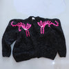肩のシルエットが特徴的な手編みのセーターです。